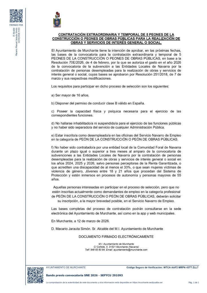 ANUNCIO CONTRATACIÓN 5 PEONES DE LA CONSTRUCCIÓN
