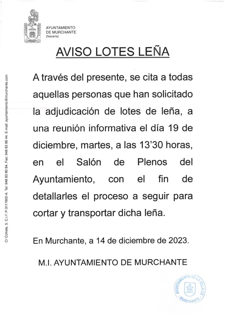 AVISO ADJUDICACIÓN LOTES LEÑA