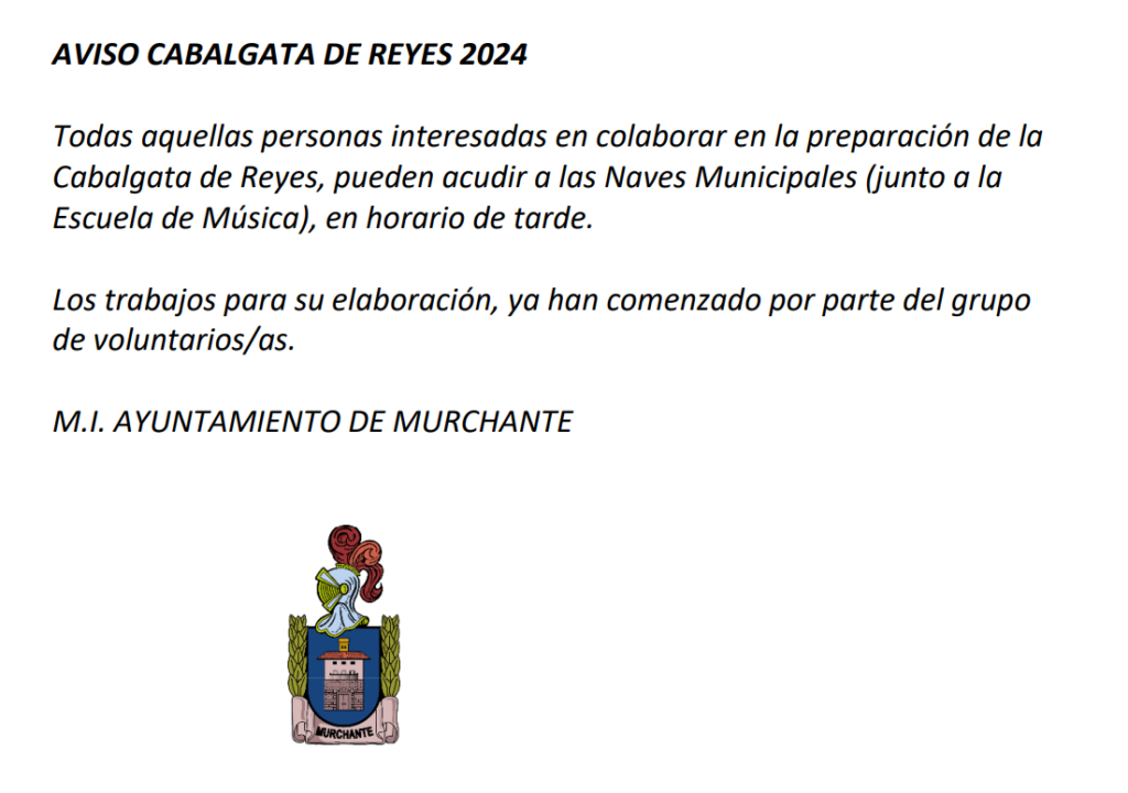 AVISO CABALGATA REYES 2024