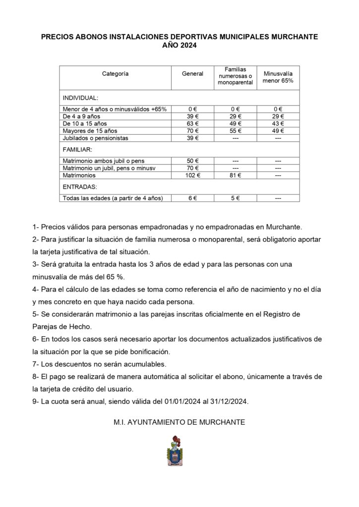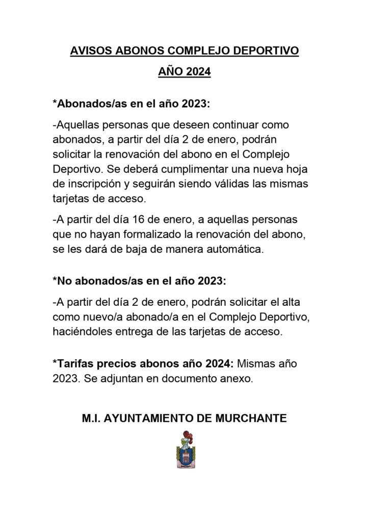 AVISOS ABONOS COMPLEJO DEPORTIVO 2024