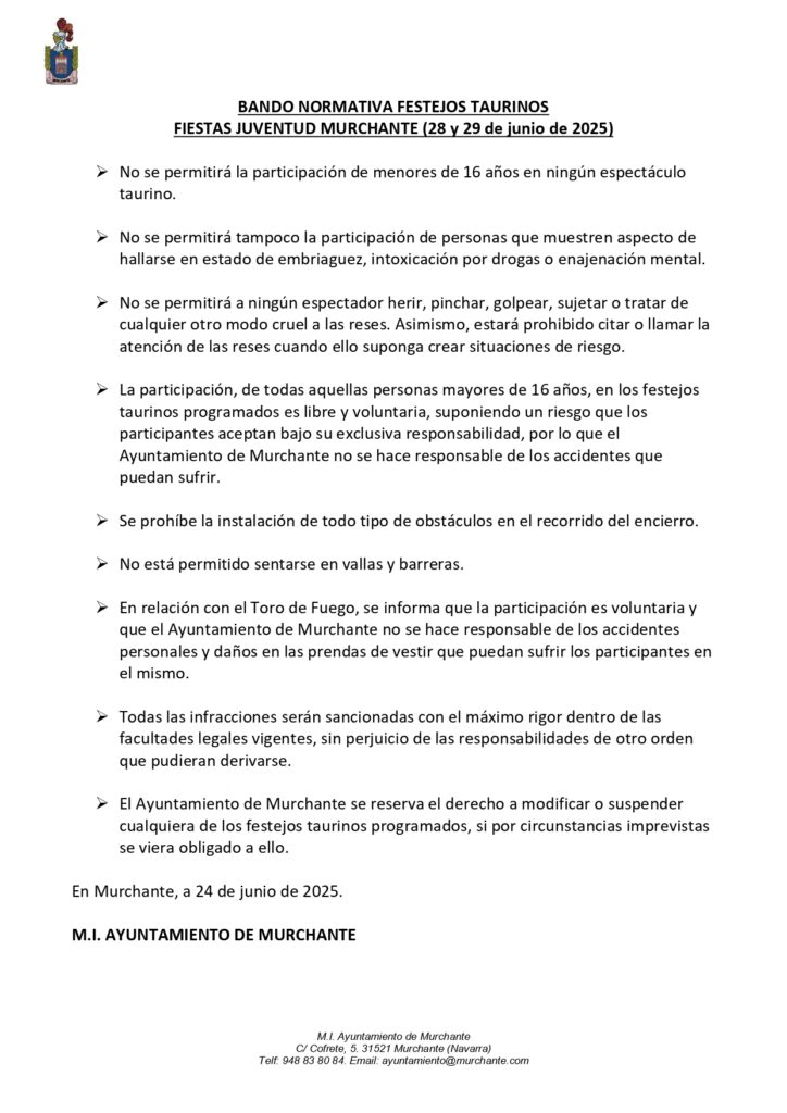 BANDO NORMATIVA FESTEJOS TAURINOS FIESTAS JUVENTUD 2025