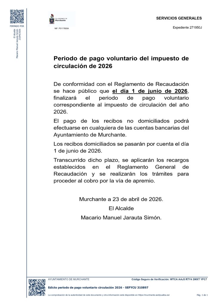 BANDO PERIODO PAGO VOLUNTARIO IMPUESTO CIRCULACIÓN 2026