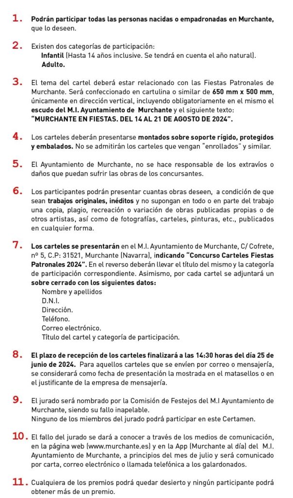 BASES CONCURSO CARTELES FIESTAS PATRONALES MURCHANTE 2024