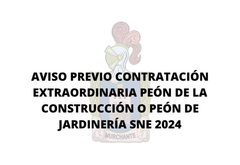 General AVISO PREVIO CONTRATACIÓN EXTRAORDINARIA PEÓN DE LA CONSTRUCCIÓN O PEÓN DE JARDINERÍA SNE 2024 Leer más » 22 abril, 2024