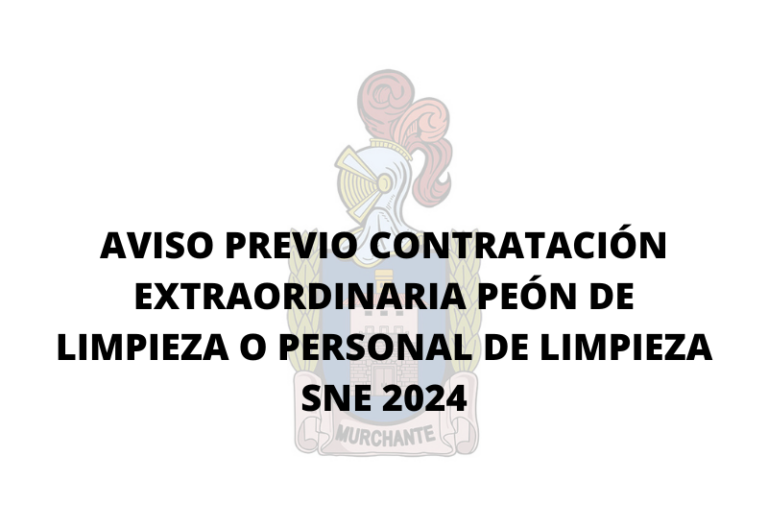 General AVISO PREVIO CONTRATACIÓN EXTRAORDINARIA PEÓN DE LIMPIEZA O PERSONAL DE LIMPIEZA SNE 2024 Leer más » 22 abril, 2024