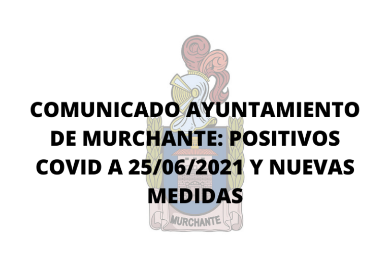 General COMUNICADO AYUNTAMIENTO DE MURCHANTE: POSITIVOS COVID A 25/06/2021 Y NUEVAS MEDIDAS Leer más » 25 junio, 2021