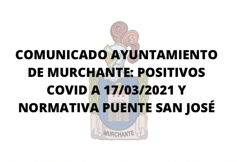 General COMUNICADO AYUNTAMIENTO DE MURCHANTE: POSITIVOS COVID A 17/03/2021 Y NORMATIVA PUENTE SAN JOSÉ Leer más » 18 marzo, 2021