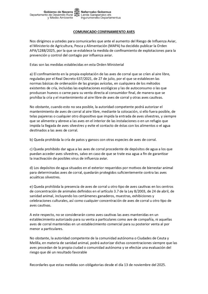 COMUNICADO CONFINAMIENTO AVES