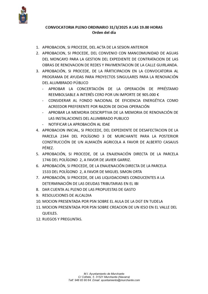 CONVOCATORIA SESIÓN ORDINARIA PLENO AYUNTAMIENTO DE MURCHANTE