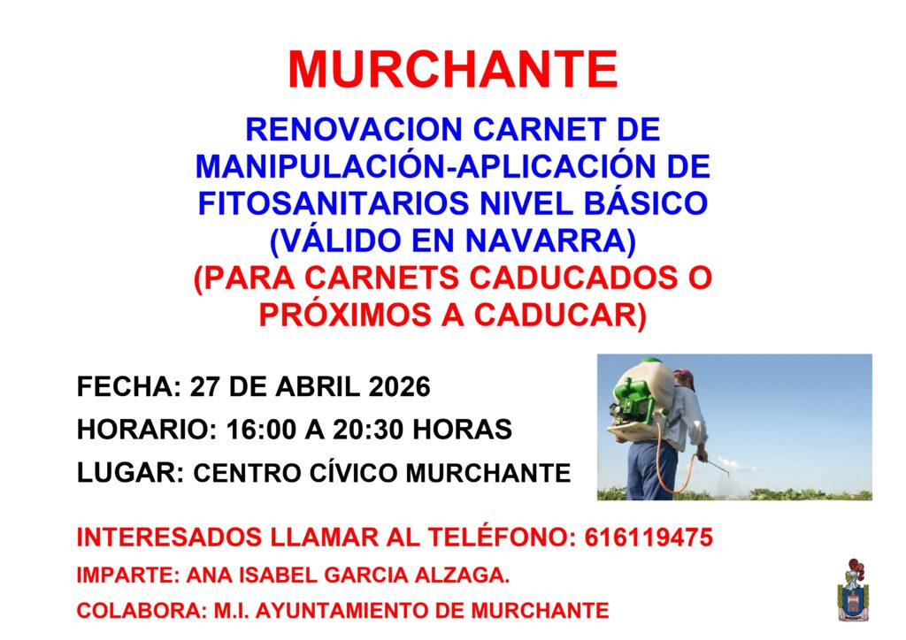 CURSOS OBTENCIÓN Y RENOVACIÓN CARNET MANIPULACIÓN PRODUCTOS FITOSANITARIOS NIVEL BÁSICO