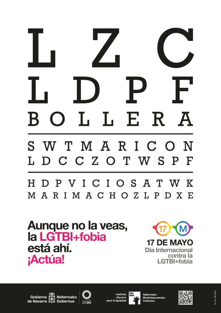 Por ello, en una fecha como esta, el Gobierno de Navarra quiere mostrar su firme rechazo ante cualquier expresión de LGTBIfobia, así como su compromiso en la defensa de los derechos de las personas LGTBI+.