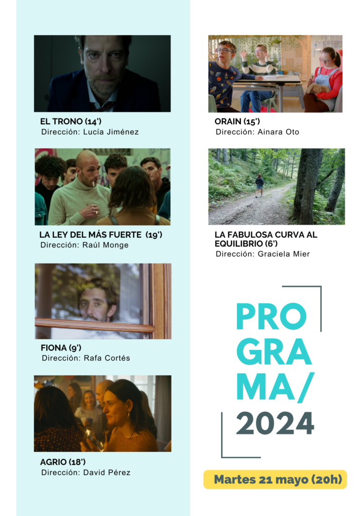 • Sábado 25 mayo, 20:30 h: Gala final entrega de premios presentada por Aroa Berrozpe. Proyección cortometrajes premiados