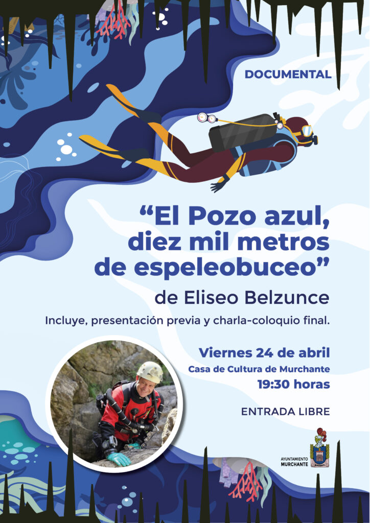 Documental “El pozo azul, diez mil metros de espeleobuceo”, de Eliseo Belzunce, a proyectar en la Casa de Cultura de Murchante, el día 24 de abril, a las 19’30 horas.