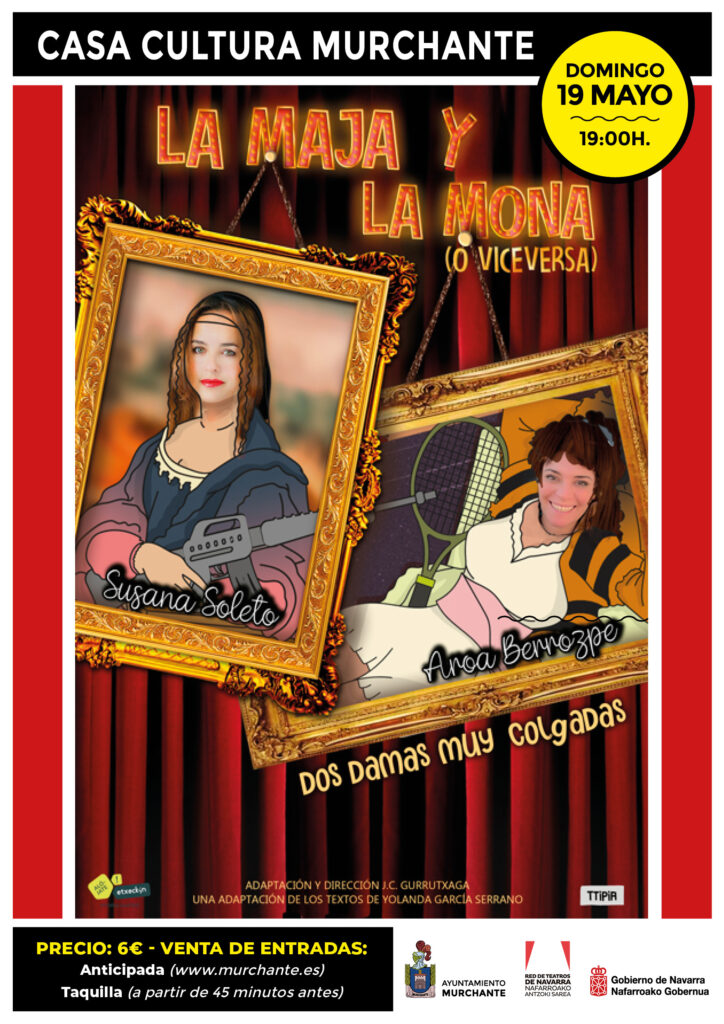 Función teatral “La maja y la mona (o viceversa)”, de Ttipia Producciones, a representar en la Casa de Cultura de Murchante, el día 19 de mayo, a las 19’00 horas.