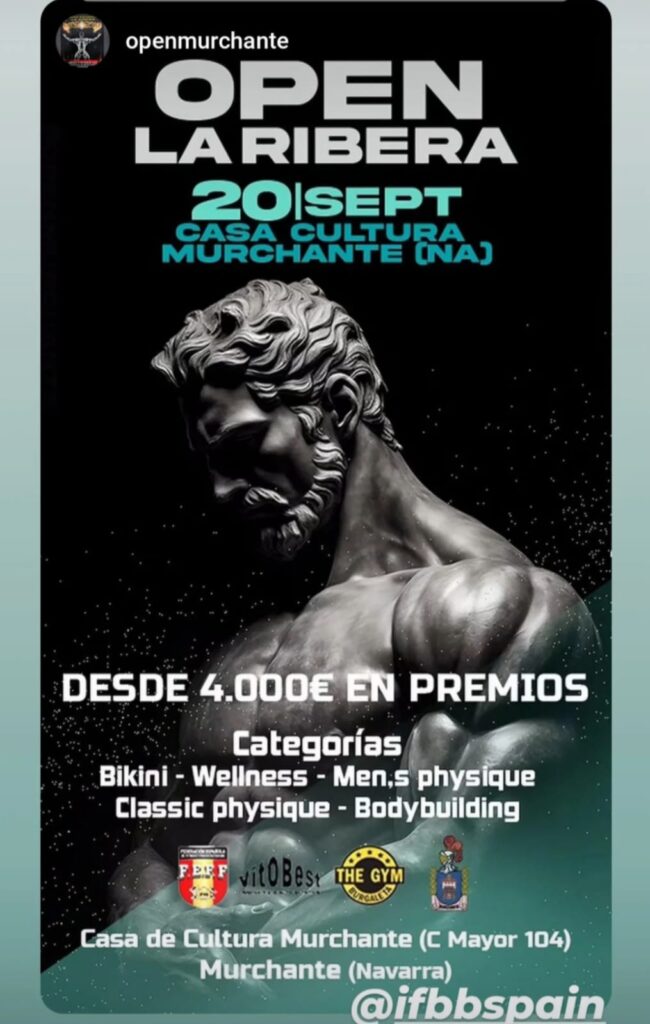 OPEN LA RIBERA (CAMPEONATO CULTURISMO) se celebrará el 20 de septiembre de 2025 en la Casa de Cultura de Murchante.