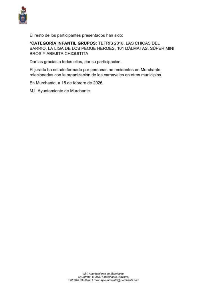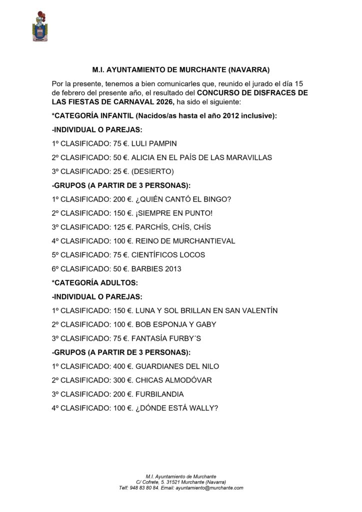FALLO DEL CONCURSO DE DISFRACES CARNAVALES MURCHANTE 2026