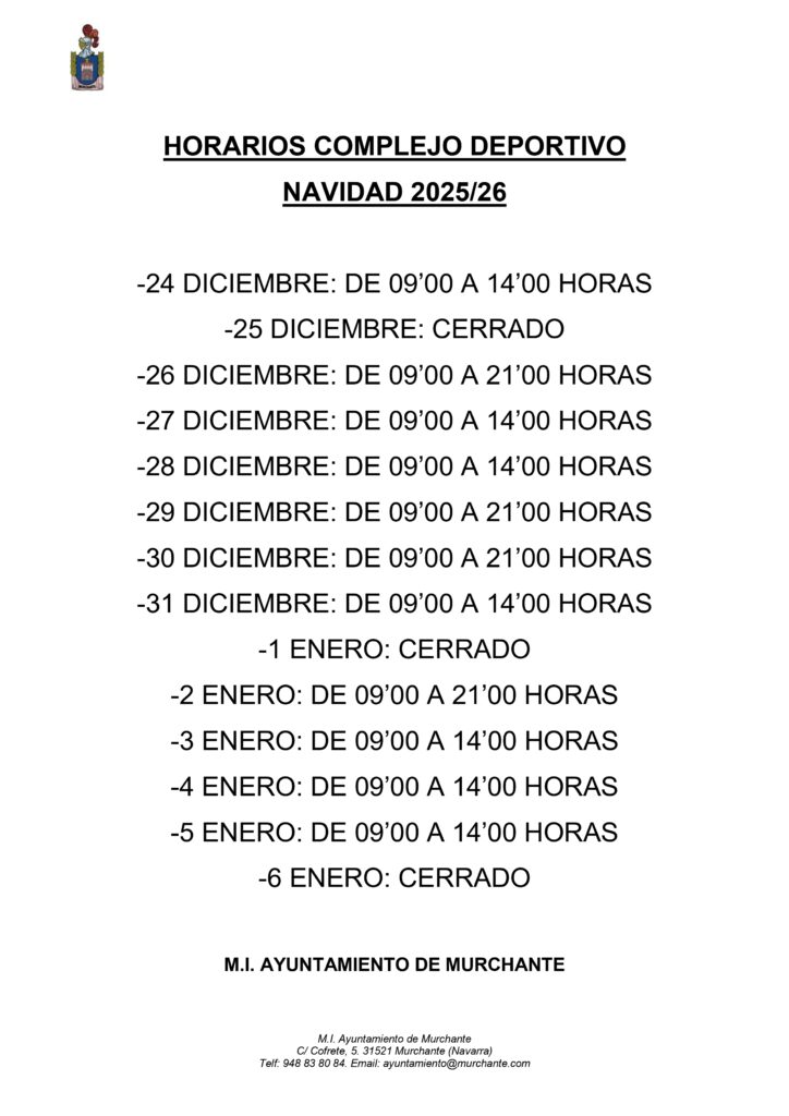 HORARIOS NAVIDAD COMPLEJO DEPORTIVO