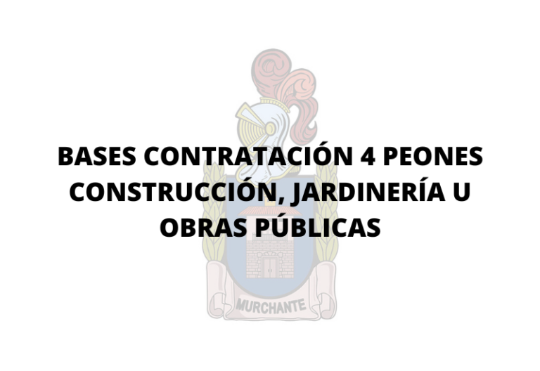 General BASES CONTRATACIÓN 4 PEONES DE LA CONSTRUCCIÓN, JARDINERÍA U OBRAS PÚBLICAS (AYUNTAMIENTO DE MURCHANTE) Leer más » 12 marzo, 2025