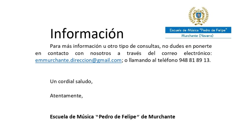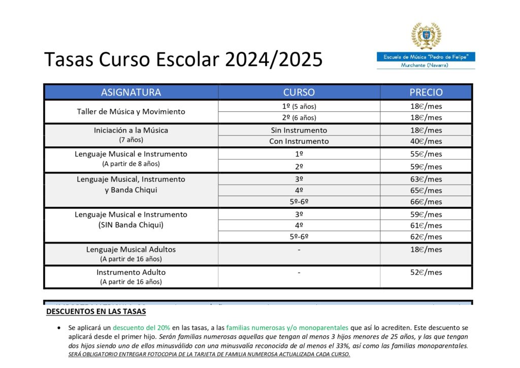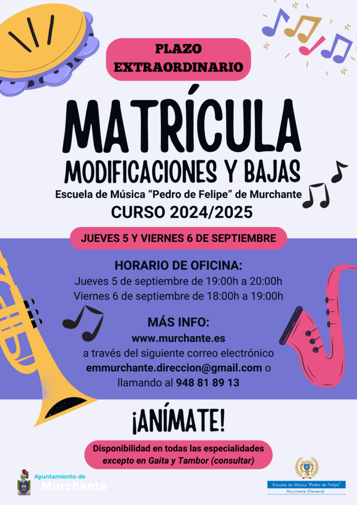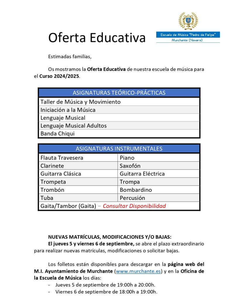 > Matrícula Escuela de Musica de Murchante (Curso 2024/2025)